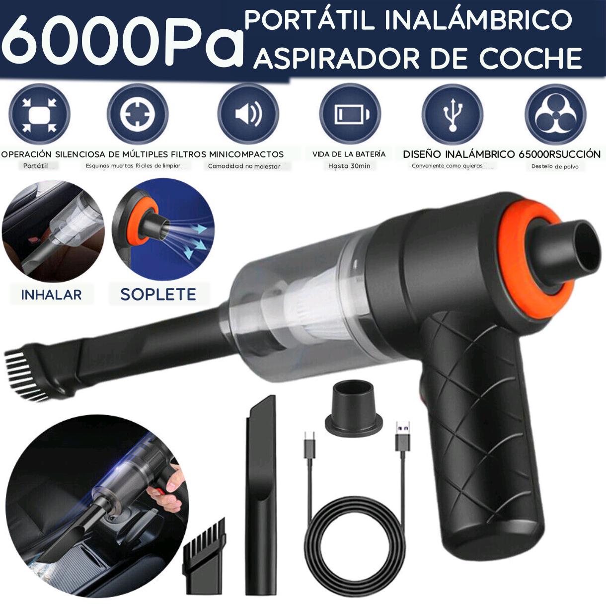 aspiradora portátil auto, aspiradora recargable coche sin cable, mini aspiradora succión 6000 Pa, aspiradora inalámbrica coche, aspiradora auto compacta.